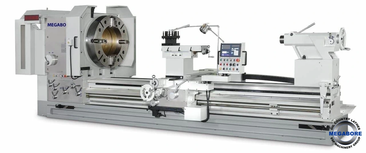 The Megabore PB model is a robust heavy duty center lathe with very flexible specifications including center height and hollow spindles. Photos show some of the options available to configure your machine,